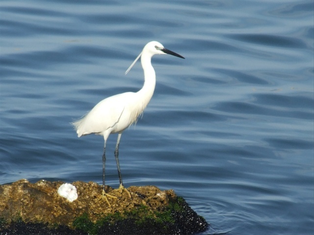 Little Egret - Common everywhere, in greater numbers than Cattle Egret. Present, but in much smaller numbers in May 2005 and 2007- including this one on the outer harbour wall at Sant Carles