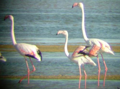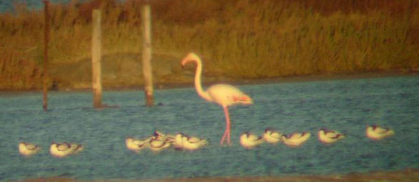 Greater Flamingo - Easy to see and admire at Bassa de la Tancada and in the Port del Fangar and at Bassa de les Olles - several hundred present. In May 2005 vast numbers in the Punta de la Bunya reserve, with just a handful at Tancada. In 2007 there were good numbers here