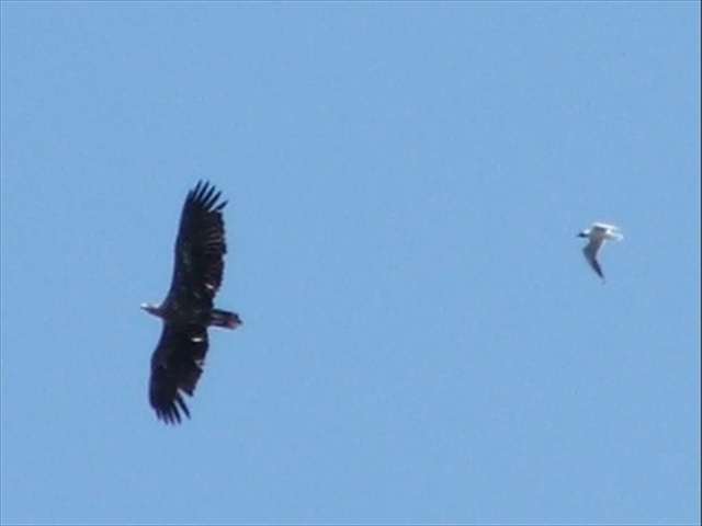 White Tailed Eagle - One electifying sighting at Péteri-tó at a distance of about half a mile in 2005, and a juvenile bird low overhead above the fishponds at Budos Szek in 2006 caused immense panic - compare the Black Headed Gull for size